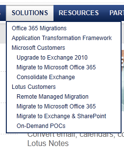The following image shows their solutions offerings. Notice that for Lotus customers it lists migrating to Microsoft solutions. But under Microsoft customers it also only lists migrating to various Microsoft solutions.
