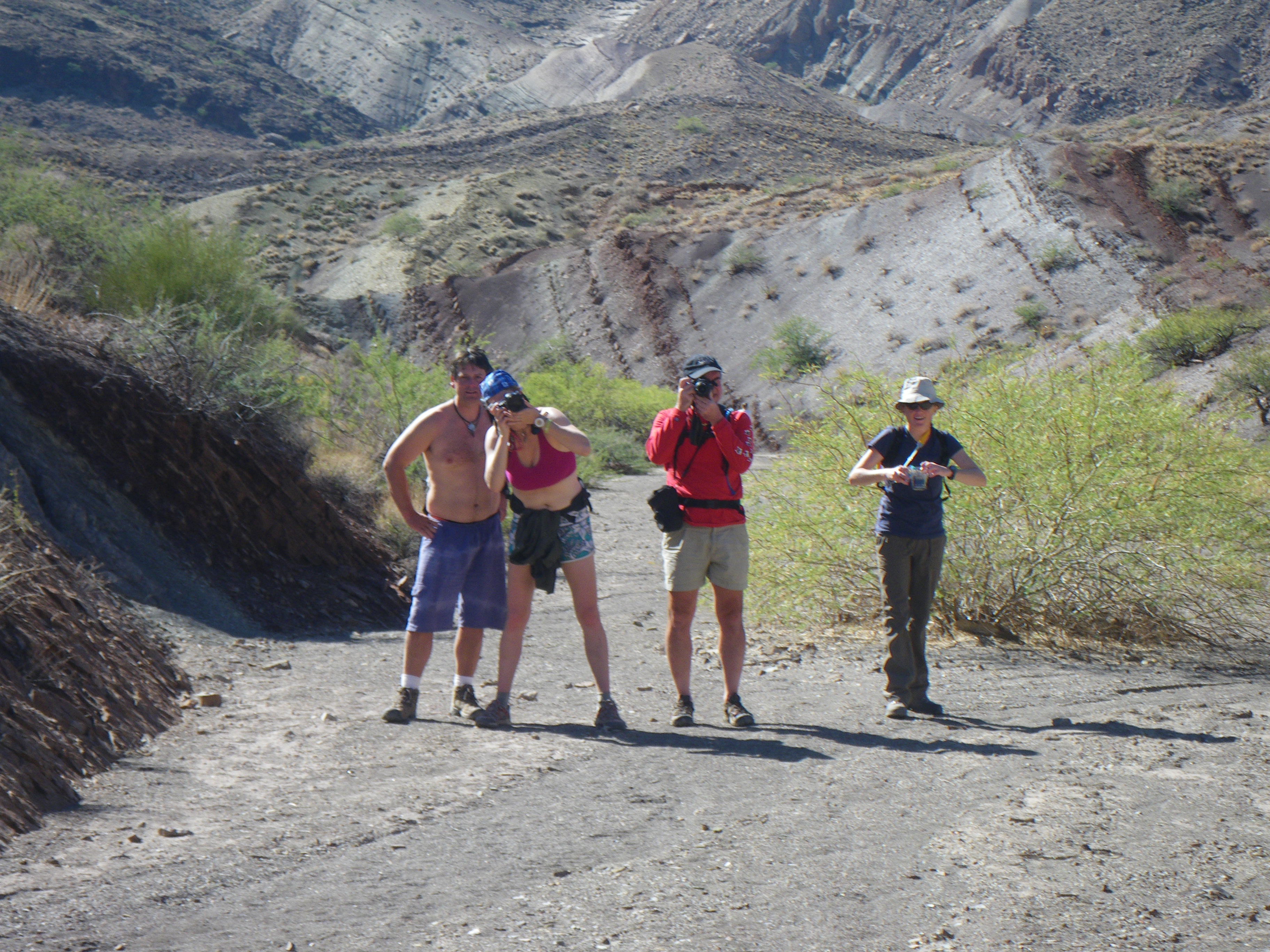 Shu’s hand is still puffed up like a balloon, but he has almost full use of it. Craig has a cut on his finger and Gary cut his knuckle. The very ends of my fingertips are getting sensitive to pressure, probably from being constantly dry. This dry desert air is hard on hands.
