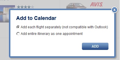 As I added my IBM Connect (Lotusphere) Conference travel plans to my IBM Lotus Notes calendar, Alaska Airlines graciously pointed out on their website yet another limitation of Outlook. They have a handy “Add to Calendar” feature. When you click it, it gives the option to add each flight to the calendar as a separate entry with the stipulation: “(not compatible with Outlook)”. See below. Just more proof that popularity does not equate to quality. In a way, I’m thankful. If everyone used IBM Lotus Notes, that would be one less advantage my clients had over their competition.