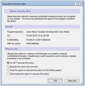 You know how Windows will prompt you to ask if you trust an application to make changes to your computer? Well Notes has had that as an integral part of the software long before Windows did it.